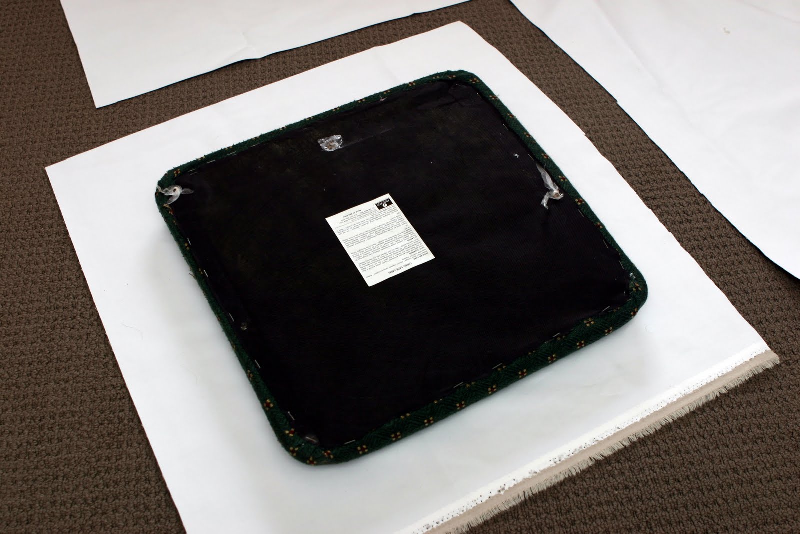 I bought the fabric from spotlight along with a cheap staple gun and set about recovering them.